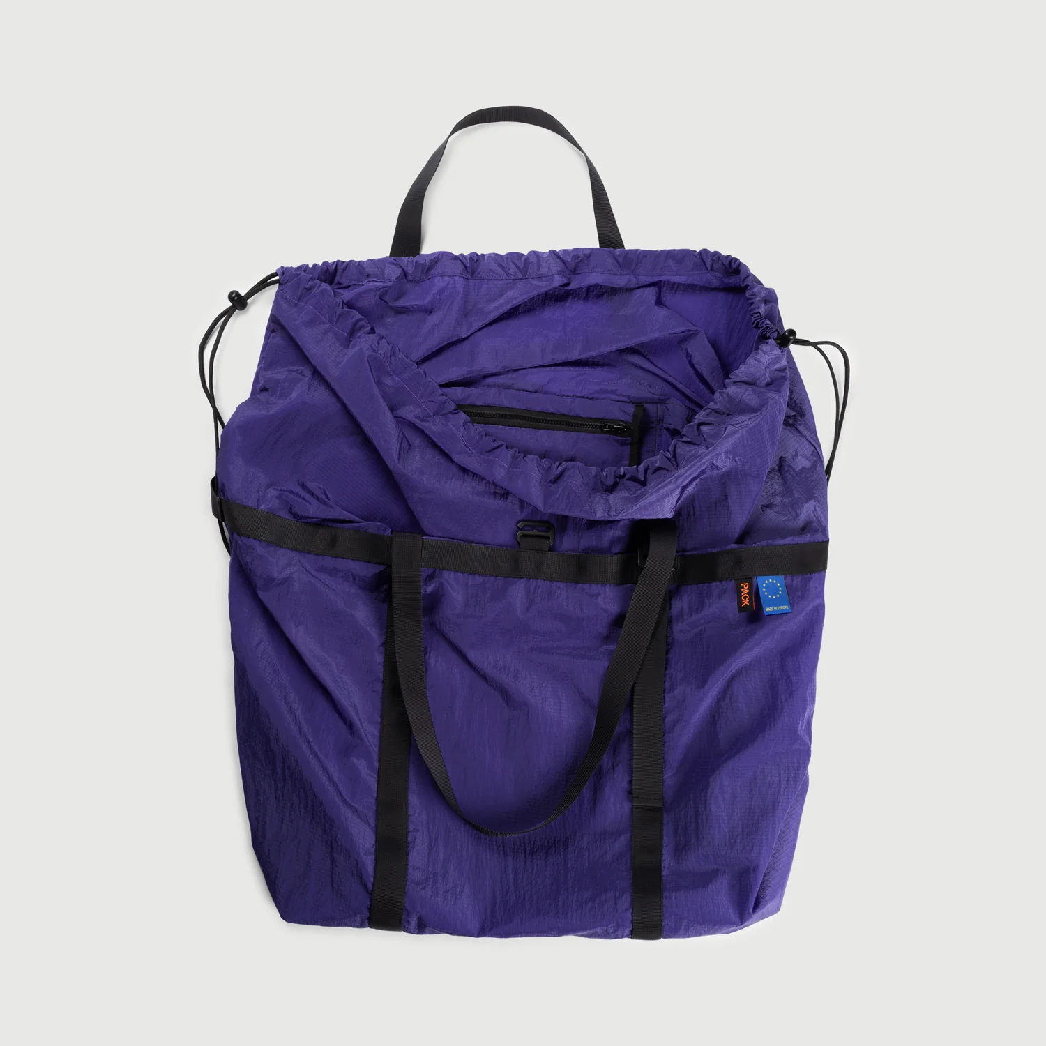 A lightweight, packable drawstring holdall for trips, the gym, or days on the move. Weatherproof and flexible, designed to carry a full load comfortably while keeping its shape when lightly packed. A simple closure and a spacious interior make it easy to adapt to the day.